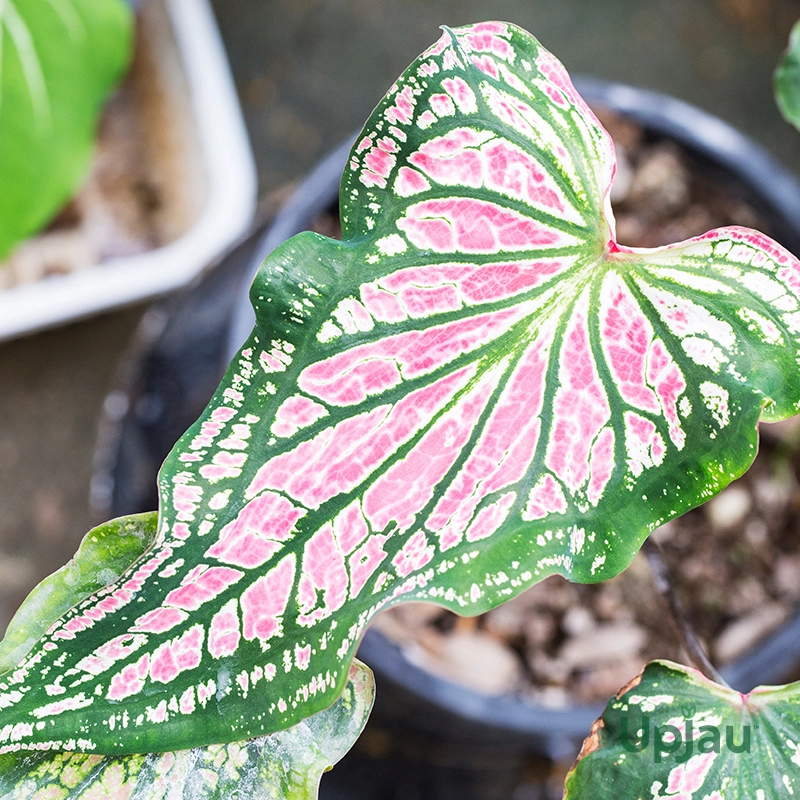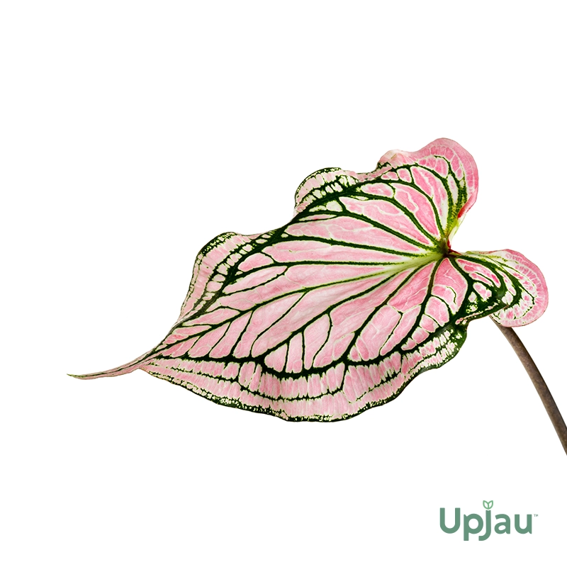 Pink Caladium Cloud Bulb, available at Upjau.in,the best online plant nursery in IndiaΒ features charming pink and white foliage with delicate patterns, adding a touch of whimsy and romance to any garden or indoor setting.